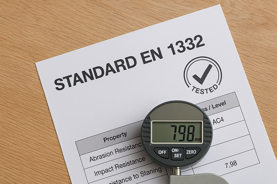 Zakaj je to pomembno? Ker kupci običajno nimajo vpogleda v to, kako je laminat izdelan – certifikat pa je edini zanesljiv indikator, da je bil proizvod testiran pod enotnimi pogoji in da zagotavlja določeno raven kakovosti. Standard EN 13329 tako deluje kot varovalka med proizvajalcem in potrošnikom, saj omogoča objektivno primerjavo med različnimi izdelki.