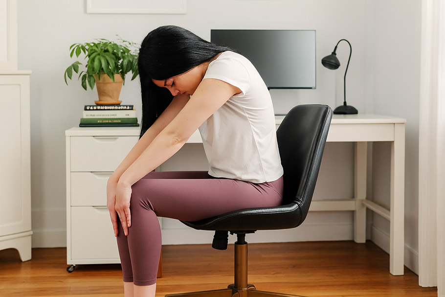 Če se tej slabi telesni dinamiki doda še stres, roki, ki pritiskajo na storilnost, in slaba ergonomija domačega pisarniškega kotička, je recept za težave skoraj zagotovljen.